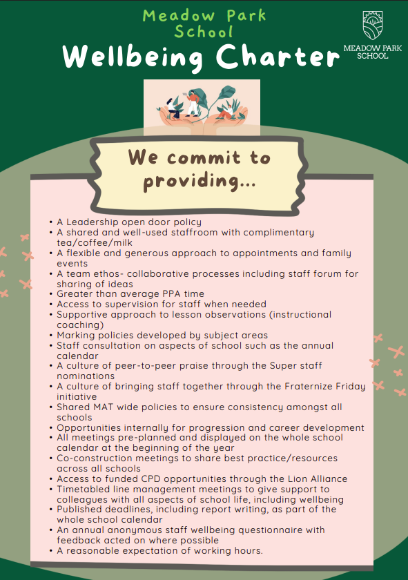 Meadow Park is delighted to have achieved accreditation for the Human Kind Staff Wellbeing Award, a nationally recognised framework that supports schools and organisations to prioritise and embed staff wellbeing at every level.